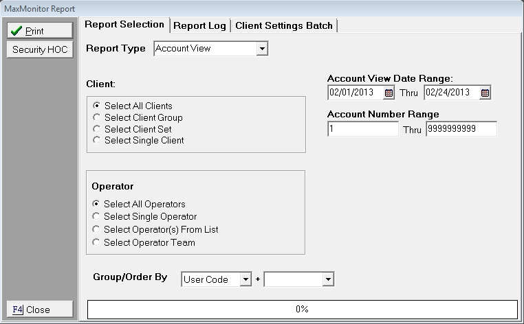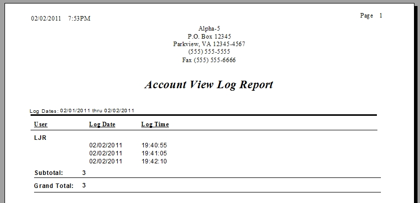 MaxMonitor keeps a log of the times the Account View Report has been pulled. This list can be viewed and printed for audit purposes.