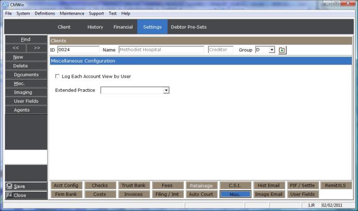 Select the button to display the Client's Miscellaneous Settings Screen.