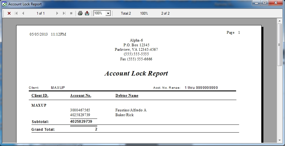 This report requires the MaxSecurity Feature that has Account Locking. The reports a list of the accounts that are locked from access.
