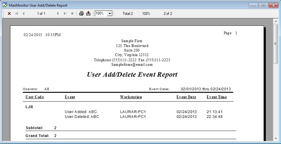 MaxMonitor keeps a log of user codes added and deleted along with the user who deleted the code and what workstation it was deleted.