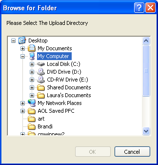 will bring up a Browse for Folder window.