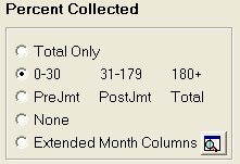 To select a breakdown of the percentage collected by numbers of days delinquent with columns for 0 to 30 days, 31-179 days and 180 plus days delinquent, click the radio button to the left of the 0-30 31-179 180+ selection.