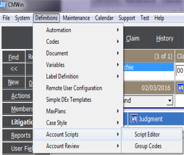To setup a script, click Definitions > Account Scripts > Script Editor.
