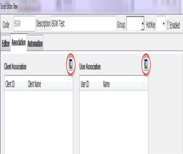 Note: By using Association, only the client(s) or user(s) selected will have access to the script. If you would like the script to be available for All Clients and/or Users, either do not use Association or move all clients/users to the selected list.