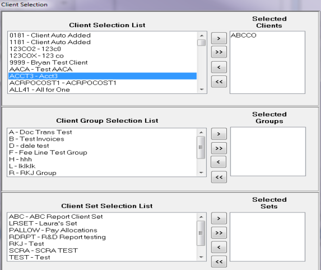 By clicking the Detail button for the Client, you can assign your script to individual clients, client groups, or client sets. Use the “>” or “<” buttons to select individual items. Use the “>>” or “<<” buttons to select all items.