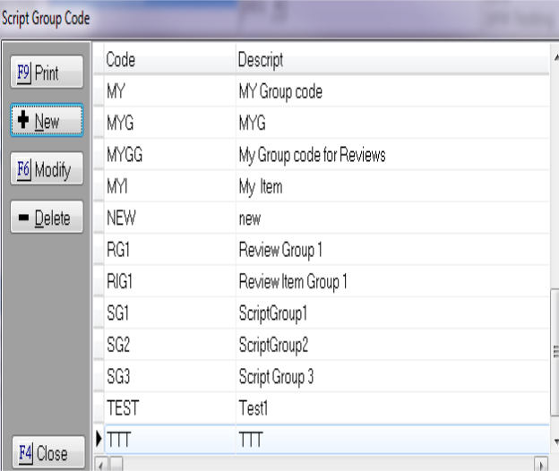 Give your script a Code and Description. The code can be up to 10 characters in length and cannot be changed after the script has been saved.