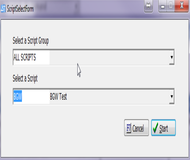 Upon clicking the “More” option, you will see the two drop down menus. From the top drop down menu, select your group (if any) or choose ALL SCRIPTS. In the lower drop down menu, select your script and click the Start button.