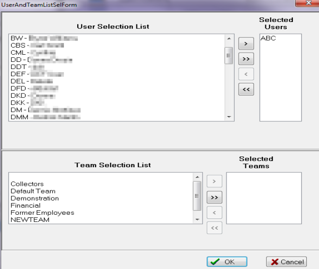 By clicking the Detail button for the User, you can assign your script to individual users or team. Use the “>” or “<” buttons to select individual items. Use the “>>” or “<<” buttons to select all items.