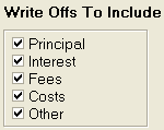 The Statistics Reports allow you to choose the specific adjustments specifically Write Offs you would like to include in the report. You must first select to include subsequent charges, under the Placements and Charges Options.