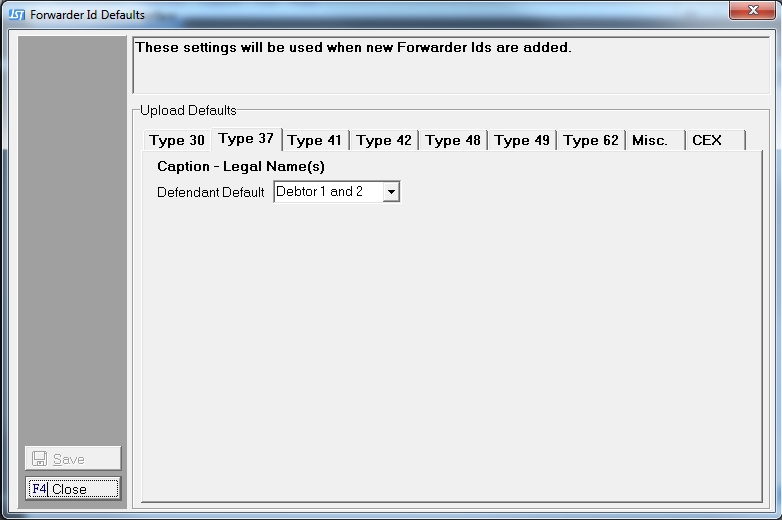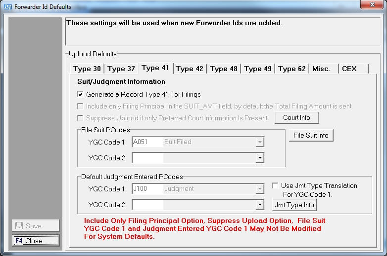If most of your forwarders have the same Suit/Judgment requirements for upload, select the Type 41 Tab and setup the proper settings.