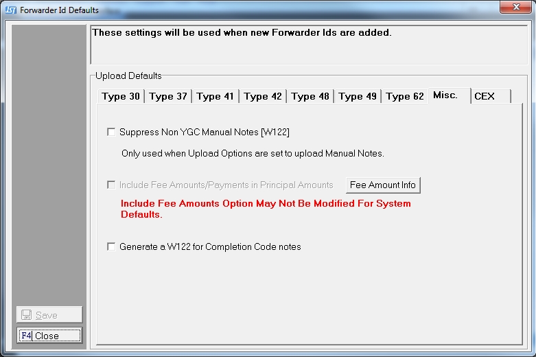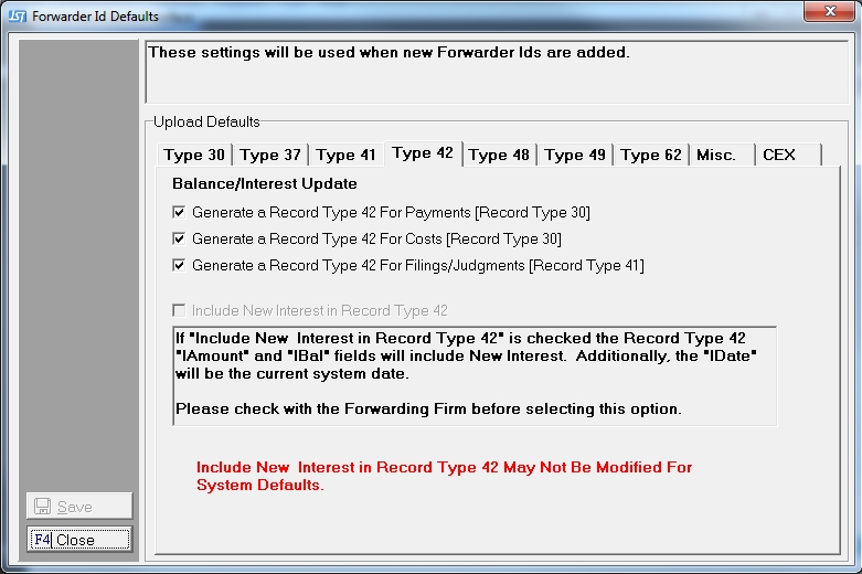 If most of your Forwarders have similar Balance/Interest Update requirements for upload, select the Type 42 tab and setup the proper settings.