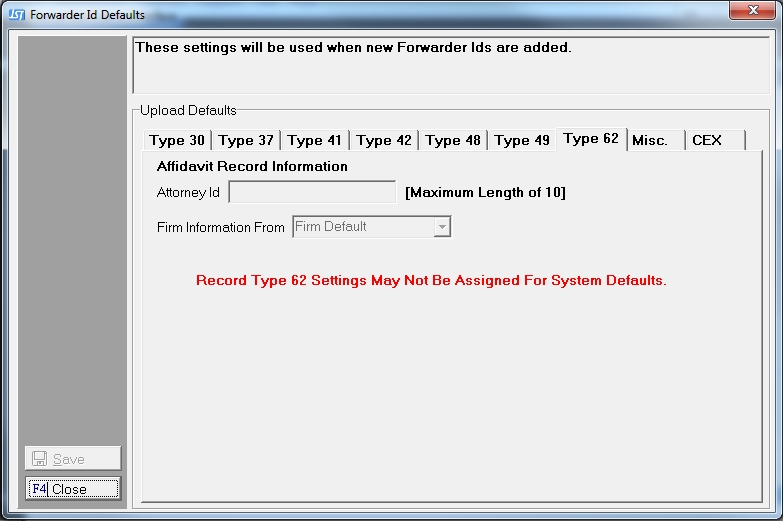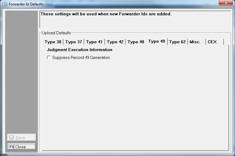 If most of your Forwarders do not need the Judgment Execution Information record, select the Type 48 tab and setup the proper settings.