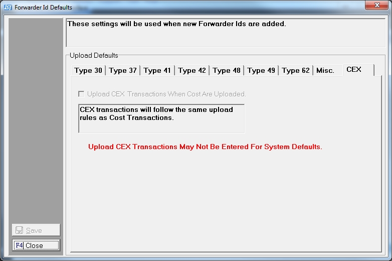 Select the Financial Transaction Defaults on this screen. If most of your Forwarders typically have the same setting for financial transaction, set the defaults here.