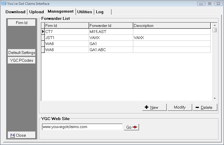 From the Management Tab in the You've Got Claims Interface, to display the Management Tab.