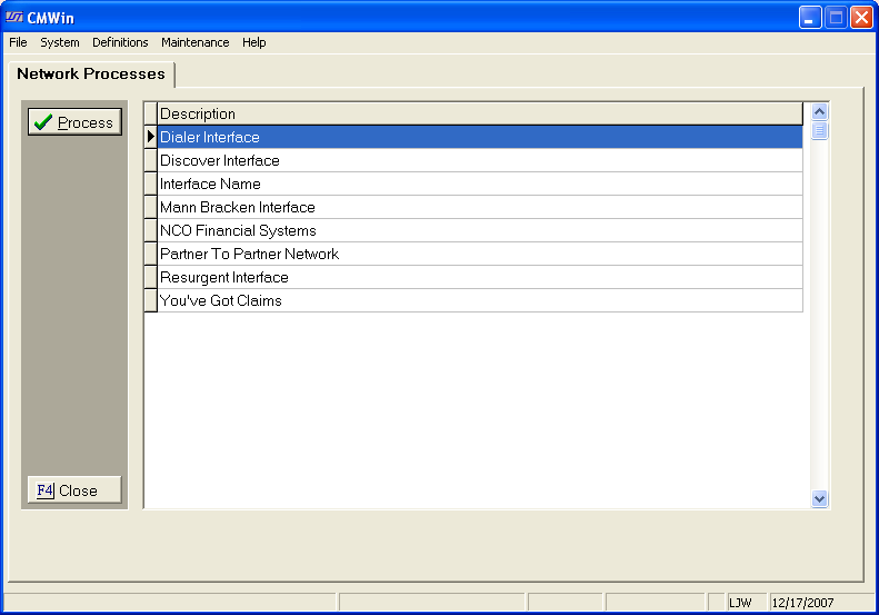 From the Network Processes screen, click and select the You've Got Claims network.