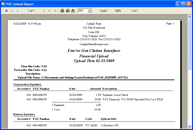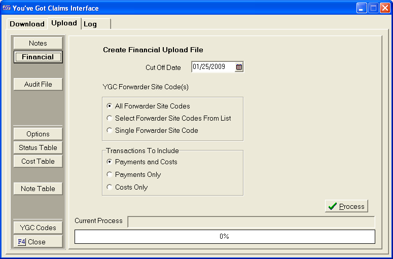 The YGC Interface only uploads payments, costs, return checks and payment reversals and cost reversals. The upload process will create a separate file for each forwarder/firm ID combination.