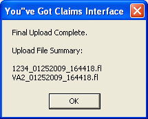 Note: The interface creates the files but it is your responsibility to transfer he files to You've Got Claims using your Mailman Account.